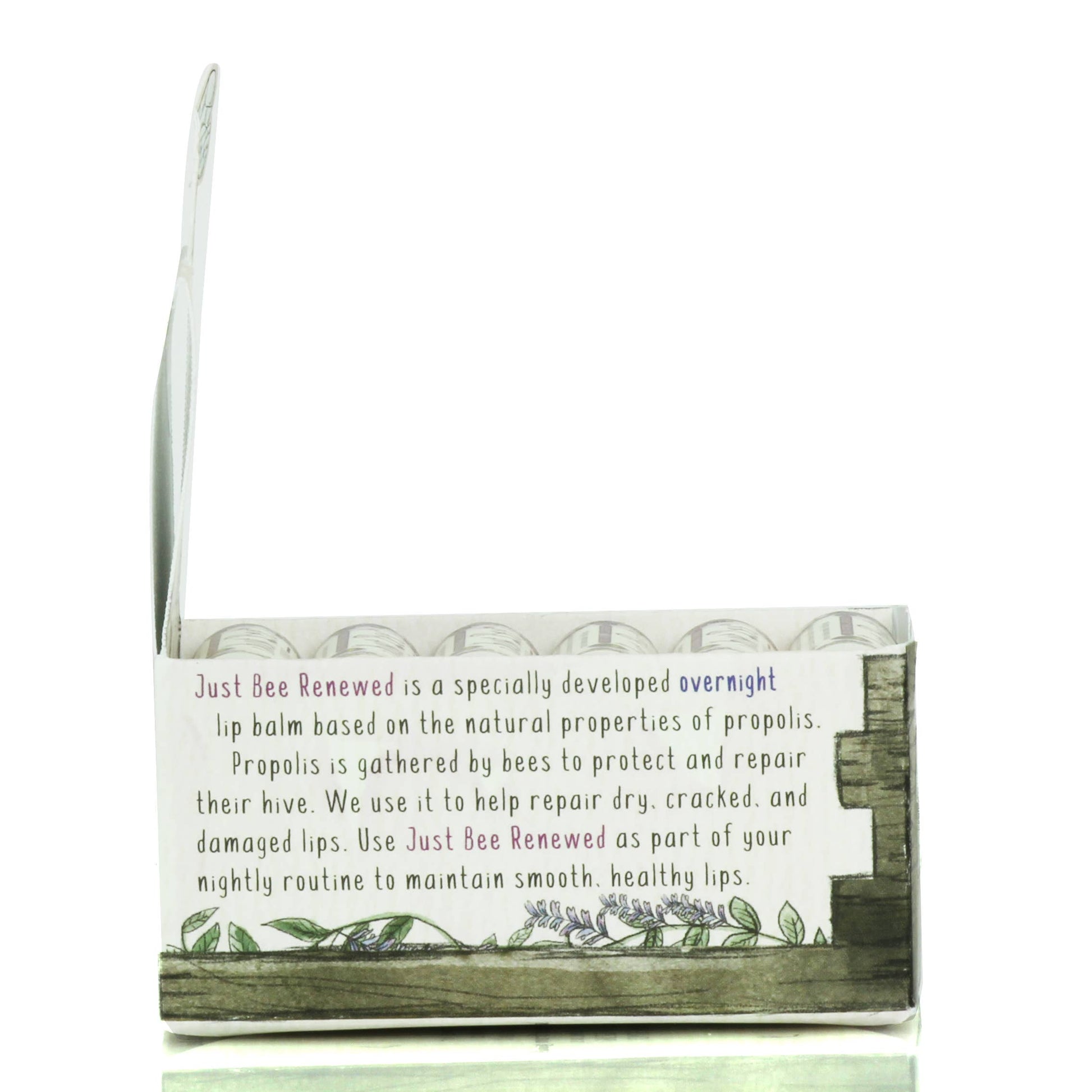 Just Bee Renewed is a specially developed overnight lip balm based on the natural properties of propolis. Propolis is gathered by bees to protect and repair their hive. We use it to help repair dry, cracked, and damaged lips. Use Just Bee Renewed as part of your nightly routine to maintain smooth, healthy lips. Size: 0.15 oz / 4.25 g.